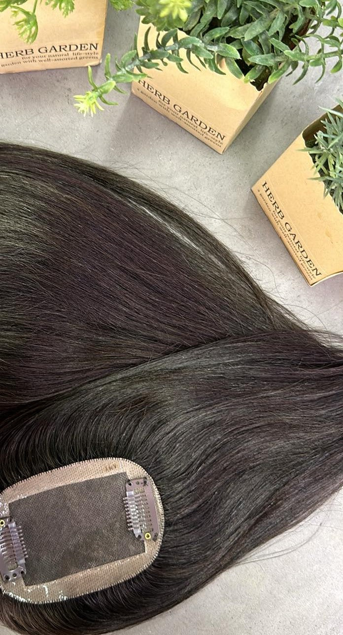 This beautiful piece provides ultimate coverage for those suffering from hair thinning at the crown. Made with a breathable silk base for unwavering comfort and long lasting wear. A crown of silk lace allows you to completely tailor this look to match your style; part it anywhere you’d like! Our hair toppers are designed for daily use.