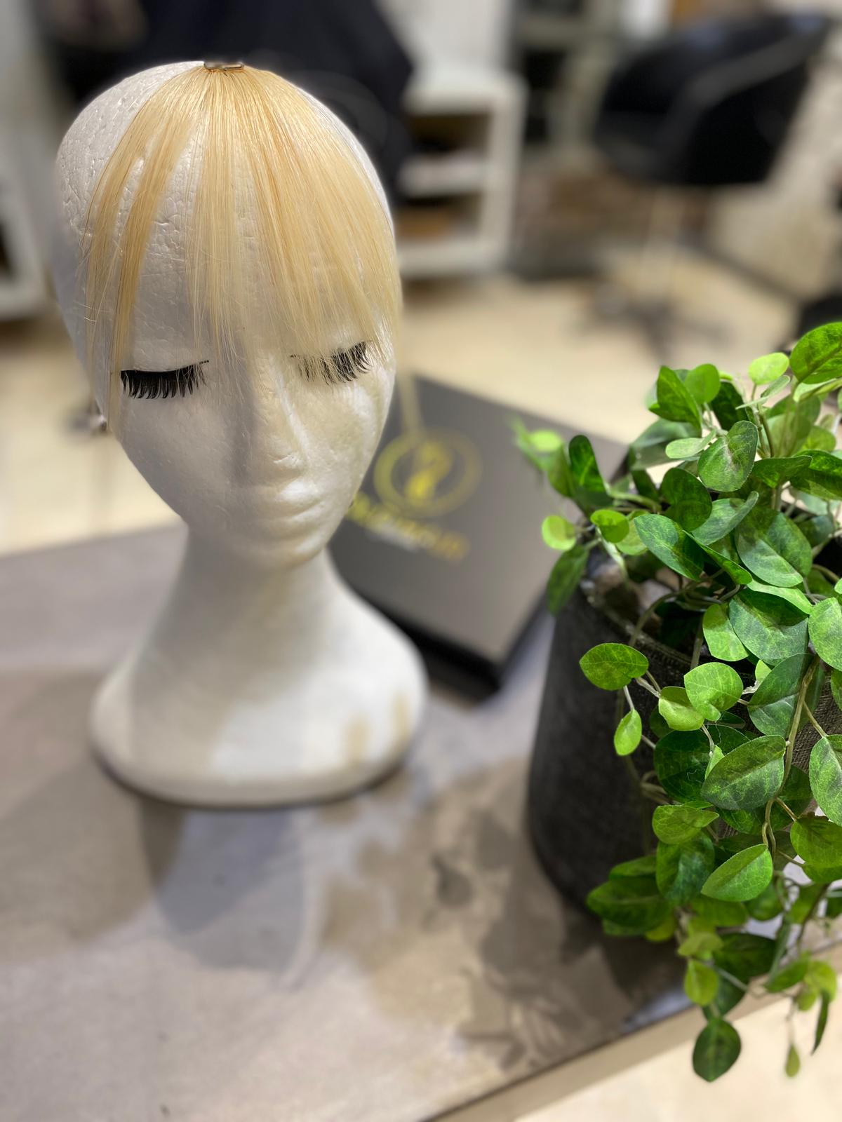 Introducing the Monroe Air Fringe, part of our new Air Fringe range. This innovative fringe is perfect for those moments when you need a bit more coverage and a touch of elegance. Made from 100% Remy Human Hair, it offers a natural look and feel that seamlessly blends with your own hair. The Monroe Air Fringe provides enhanced coverage, adding extra volume and a fuller appearance to your hairstyle. Experience the perfect combination of luxury and practicality with the Monroe Air Fringe.