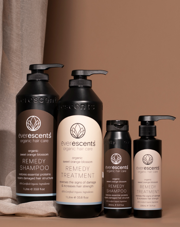 Includes the EverEscents signature blend of Organic Essential Oils and extracts; sweet orange, pink grapefruit, ylang ylang, rosemary, horsetail, nettle, sage, vitamins E and B5.
